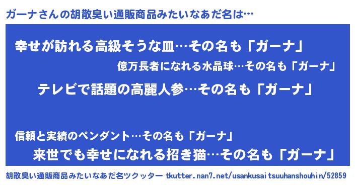 ガーナさんの胡散臭い通販商品みたいなあだ名をツクッター!