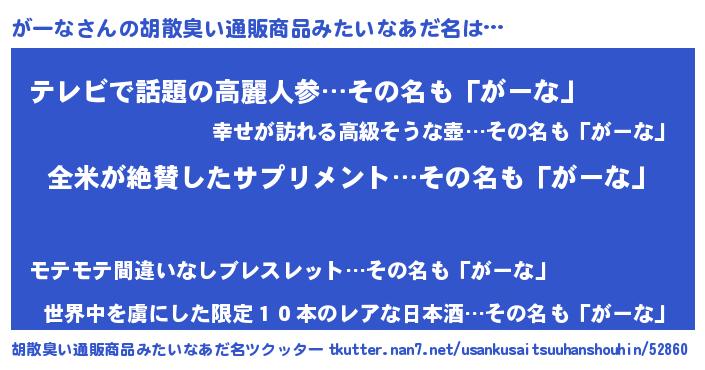 | ヘコむあだ名 | 『がーを』『豆乳』『がーにゅー』 |