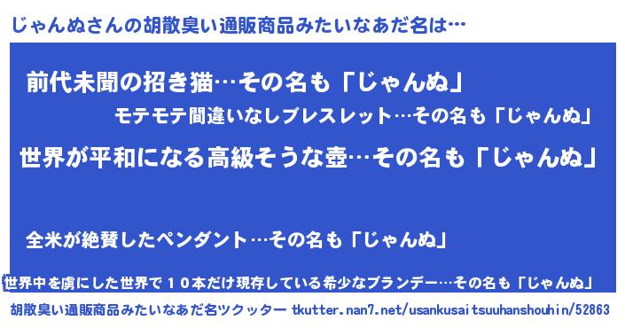 | ヘコむあだ名 | 『なまこ酢』『じゃんぬ(小並感)』 |