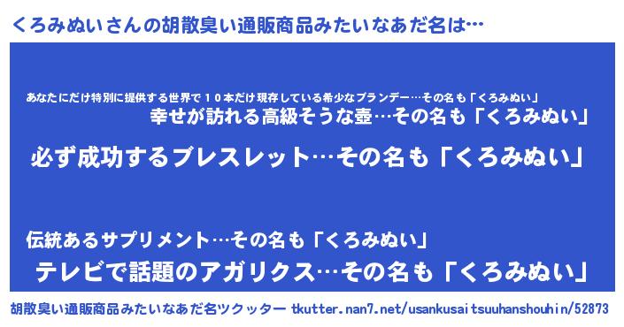 | 男性向けラノベタイトル風あだ名 | 『くろみぬいの憂鬱』 |
