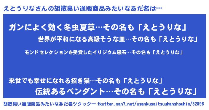 | 伝説のあだ名 | 『救世主となる占い師えとうりな』 |