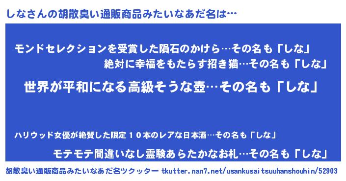 | ヘコむあだ名 | 『豆乳』『しなもー』『しな(震え声)』 |