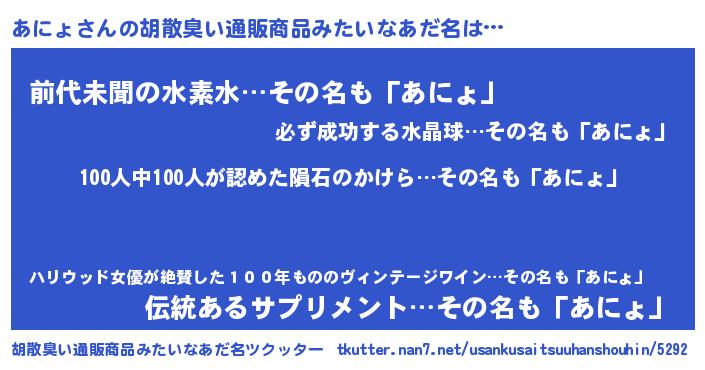 | ヒーロー風カッコイイあだ名 | 『正義の使者あにょ』『ネオアニョ』 |
