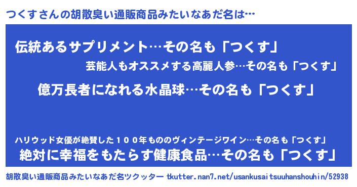 | ヘコむあだ名 | 『つくふぇ~』『つくを』『豆乳』 |