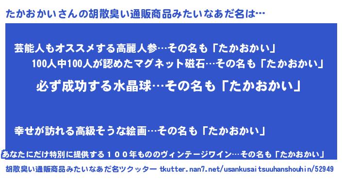 | 意味不明あだ名 | 『ペロリンたかおかい』『自称たかおかい』 |