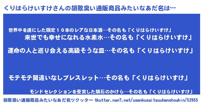 | 欧米人風あだ名 | 『くりはらけいすけクリステル』 |