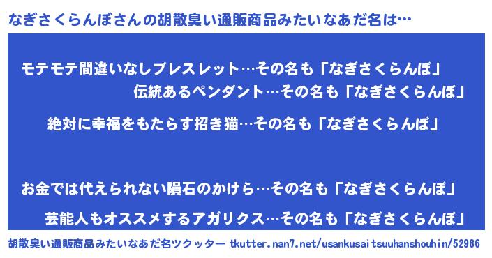 | 伝説のあだ名 | 『聞きしに勝る吟遊詩人なぎさくらんぼ』 |