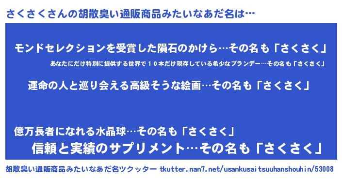 | 意味不明あだ名 | 『さくさくフォーエバー』 |