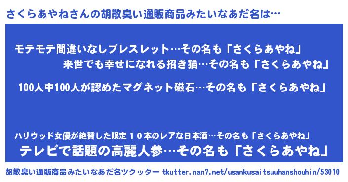 | ヘコむあだ名 | 『さくにー』『さくらあやね(笑)』 |
