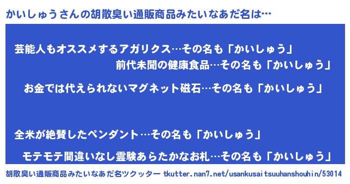 | ヒーロー風カッコイイあだ名 | 『慈愛の使者かいしゅう』『天弓騎士カイ』 |