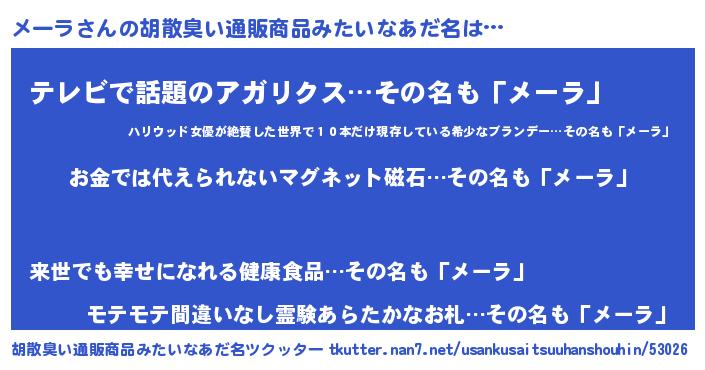 | ヘコむあだ名 | 『メーふぇ~』『メーラ(爆)』 |