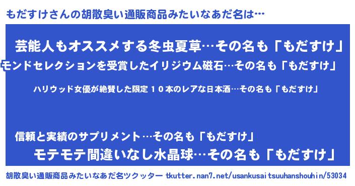 | 男性向けラノベタイトル風あだ名 | 『魔弾の王ともだすけ』『もだすけの憂鬱』 |