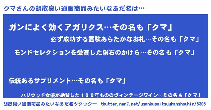 | ヒーロー風カッコイイあだ名 | 『慈愛の使者クマ』『超時空戦士クマ』 |