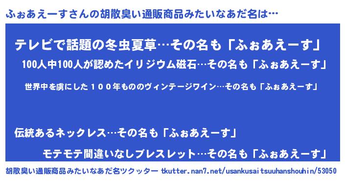 | 意味不明あだ名 | 『住所不定無職ふぉあえーす(6歳)』 |