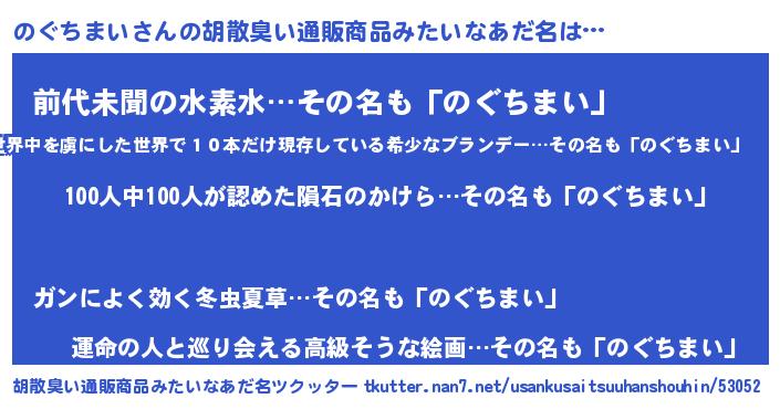 | 男性向けラノベタイトル風あだ名 | 『おまえをオタクにしてやるから、俺をのぐちまいにしてくれ! 』 |