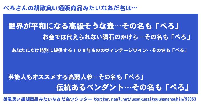 | 意味不明あだ名 | 『住所不定無職ぺろ(1歳)』 |