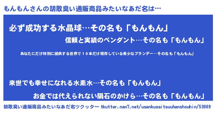 | 男性向けラノベタイトル風あだ名 | 『この素晴らしい世界にもんもんを!』 |