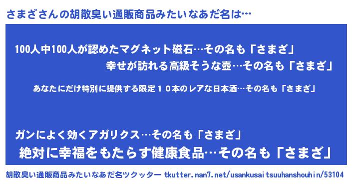 | 意味不明あだ名 | 『住所不定無職さまざ(43歳)』 |