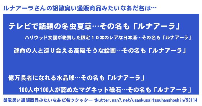 | ヘコむあだ名 | 『レバニラ』『ルナもー』『ルナを』 |