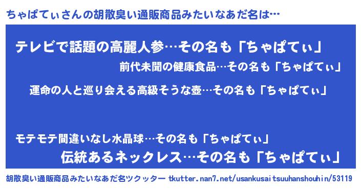 | 伝説のあだ名 | 『最強の忍者ちゃぱてぃ』 |