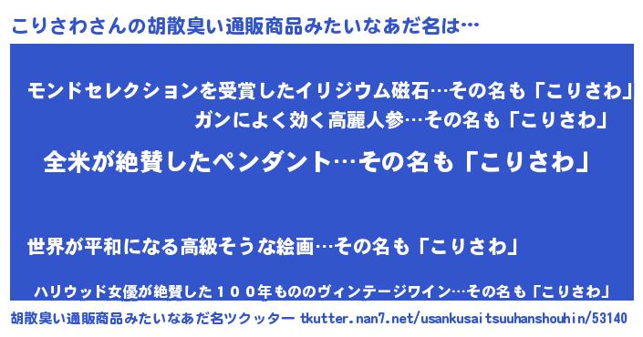 | 意味不明あだ名 | 『とにかく怪しいこりさわ』 |