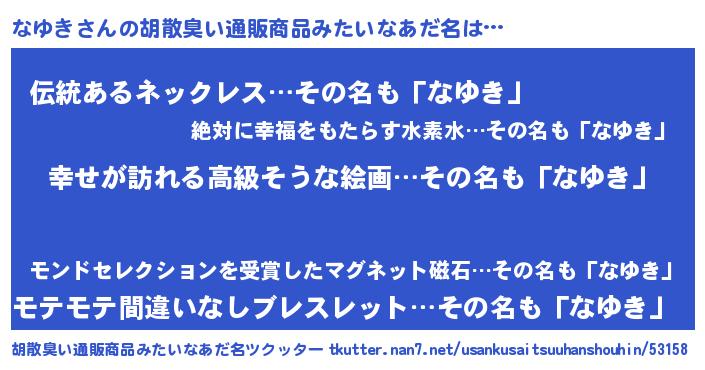 | 意味不明あだ名 | 『めかぶ科なゆき属』『ペロリンなゆき』 |