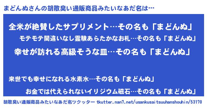| ヒーロー風カッコイイあだ名 | 『ウルトラまどんぬマン』『炎刃騎士マド』 |