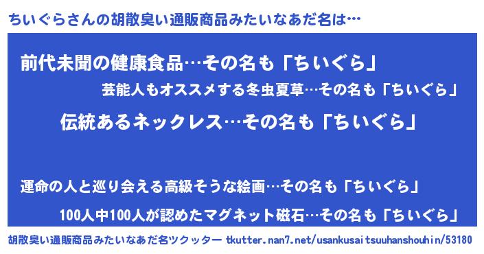| 意味不明あだ名 | 『とにかく怪しいちいぐら』 |