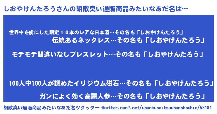 | 欧米人風あだ名 | 『アンジェラ・しおやけんたろう』 |