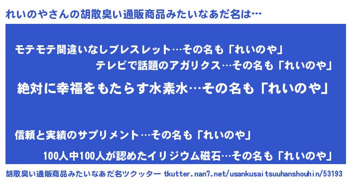 | ヘコむあだ名 | 『れいのや(苦笑)』『れいにー』 |