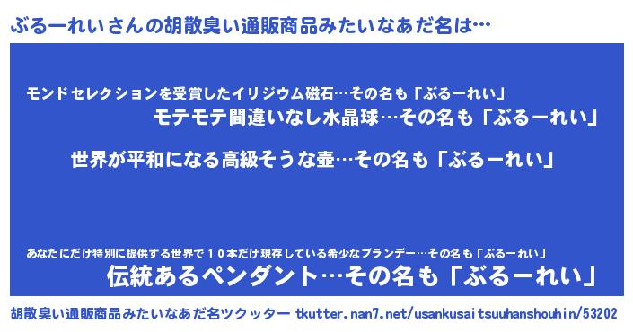 | 意味不明あだ名 | 『ぶるーれいフォーエバー』 |