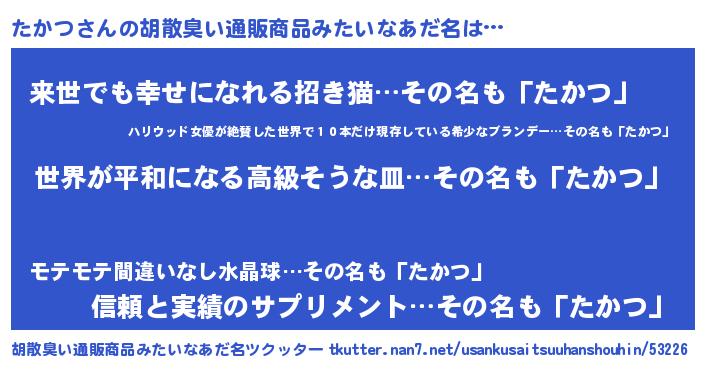 | ヘコむあだ名 | 『なまこ酢』『たかつ(小並感)』 |