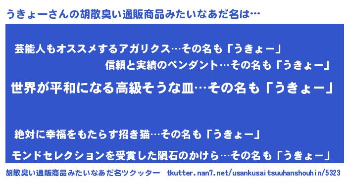| 男性向けラノベタイトル風あだ名 | 『転生したらうきょーだった件』 |