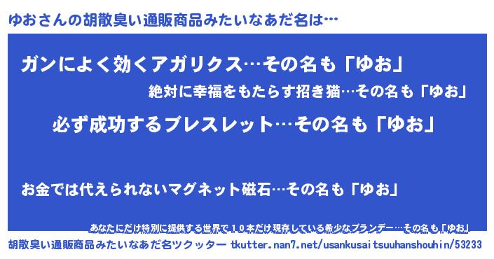 | ヘコむあだ名 | 『ゆおふぇ~』『ゆお(爆)』『つくし』 |