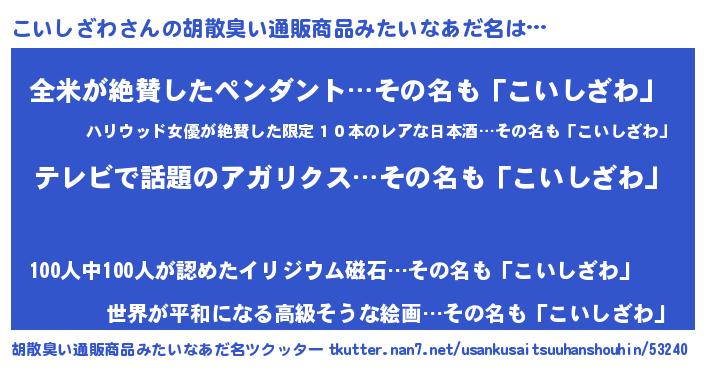 | ヒーロー風カッコイイあだ名 | 『最強戦士コイシザワ』『幻影騎士コイ』 |
