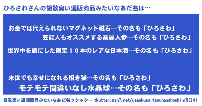 | ヘコむあだ名 | 『ひろにゅー』『ひろさわ(小並感)』 |