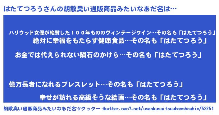 | ヘコむあだ名 | 『なまこ酢』『はたてつろう(笑)』 |