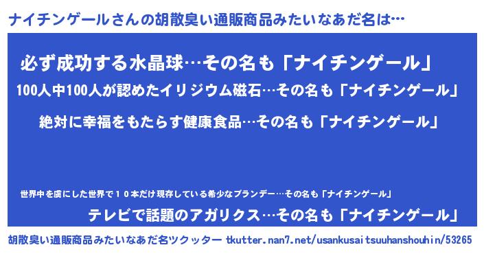 | ヘコむあだ名 | 『ナイチンゲール(笑)』『ナイにゅー』 |