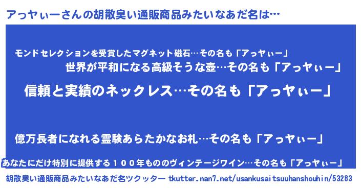 | ヒーロー風カッコイイあだ名 | 『黄金騎士アッ』『慈愛の使者アっヤぃー』 |