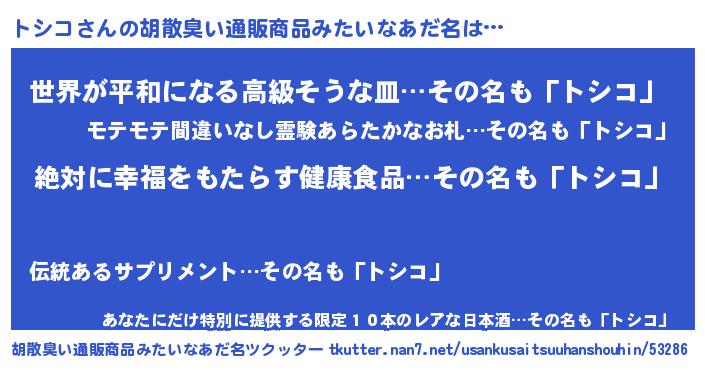 | 意味不明あだ名 | 『永久保存トシコ』『トシコフォーエバー』 |