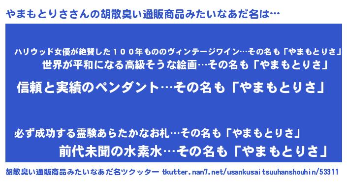 | 意味不明あだ名 | 『とにかく怪しいやまもとりさ』 |