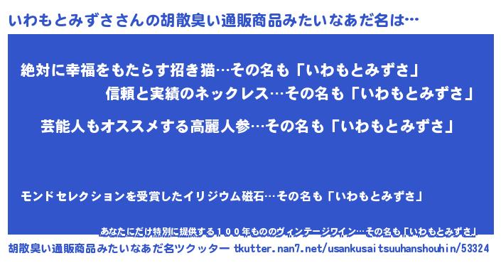 | 意味不明あだ名 | 『自称いわもとみずさ』 |