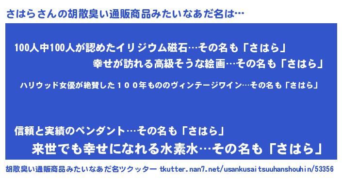| ヘコむあだ名 | 『さはら(小並感)』『つくし』 |