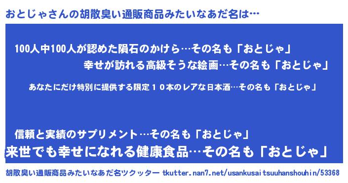 | ヘコむあだ名 | 『おとじゃ(爆)』『牛乳』『おとっ子』 |