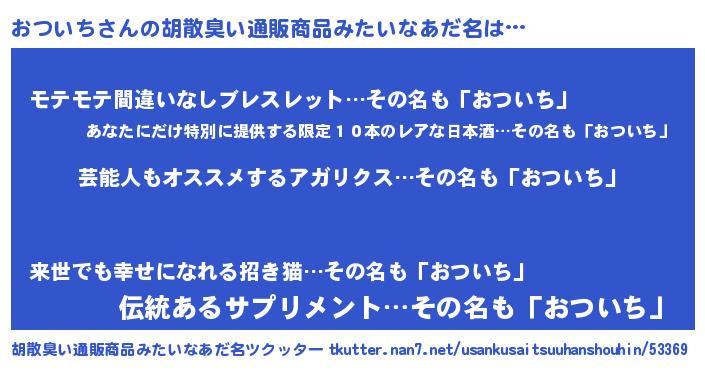 | 意味不明あだ名 | 『ニラ科おついち属』『自称おついち』 |