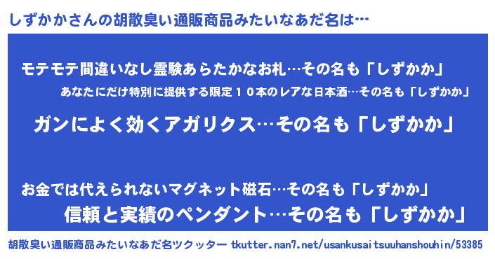 | ヘコむあだ名 | 『しずにゅー』『しずっ子』 |