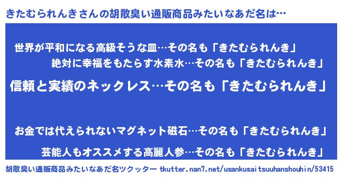 | 男性向けラノベタイトル風あだ名 | 『緋弾のキタムラレンキ』 |