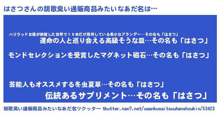はさつさんの胡散臭い通販商品みたいなあだ名をツクッター!