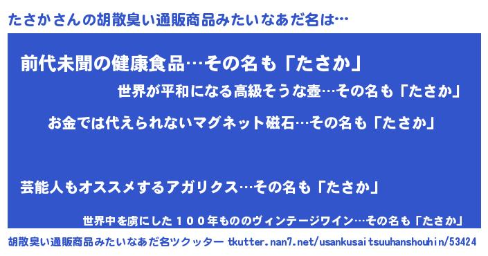| ヘコむあだ名 | 『たさか(笑)』『酢こんぶ』 |