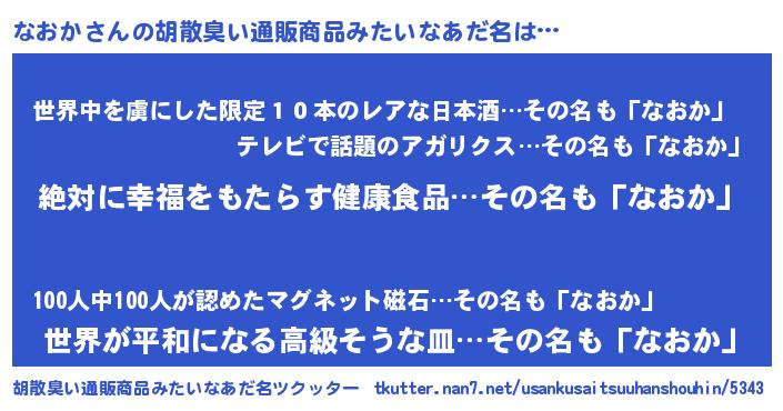 | ヘコむあだ名 | 『なおか(爆)』『牛乳』『なおっ子』 |